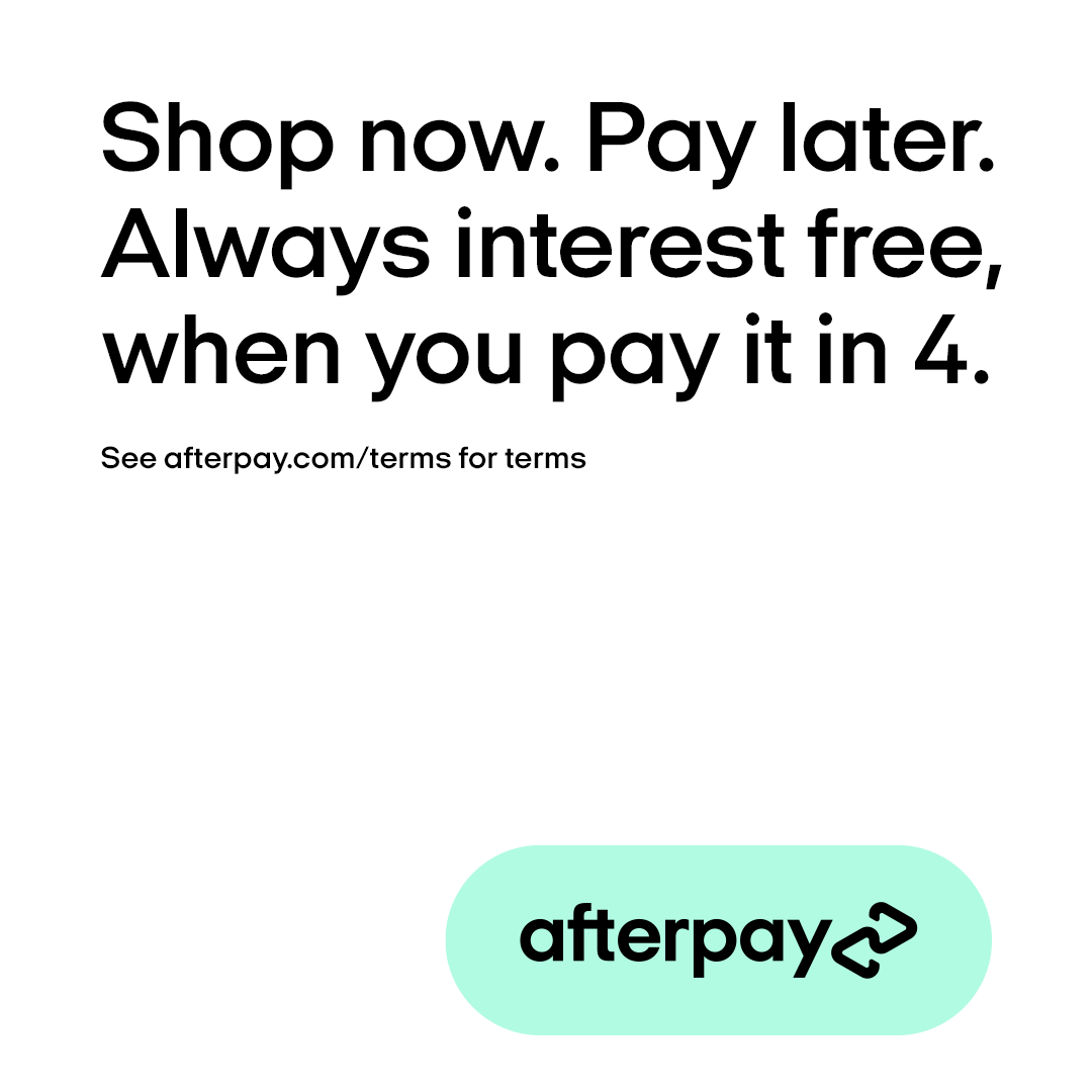 Use these assets to inform your customers that Afterpay is available as a payment method. All assets are downloadable as both .png and .svg files.